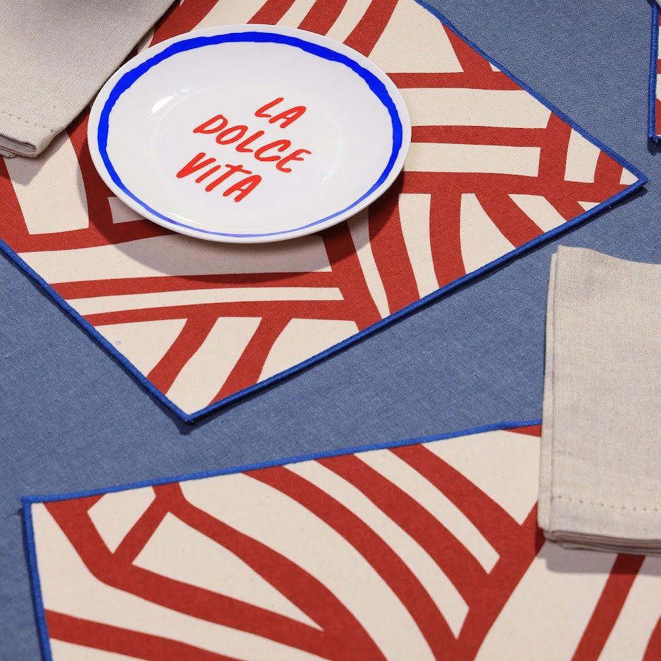 Each colourway is finished with a contrasting fabric border, enhancing the placemat’s definition and adding a refined, tailored look.