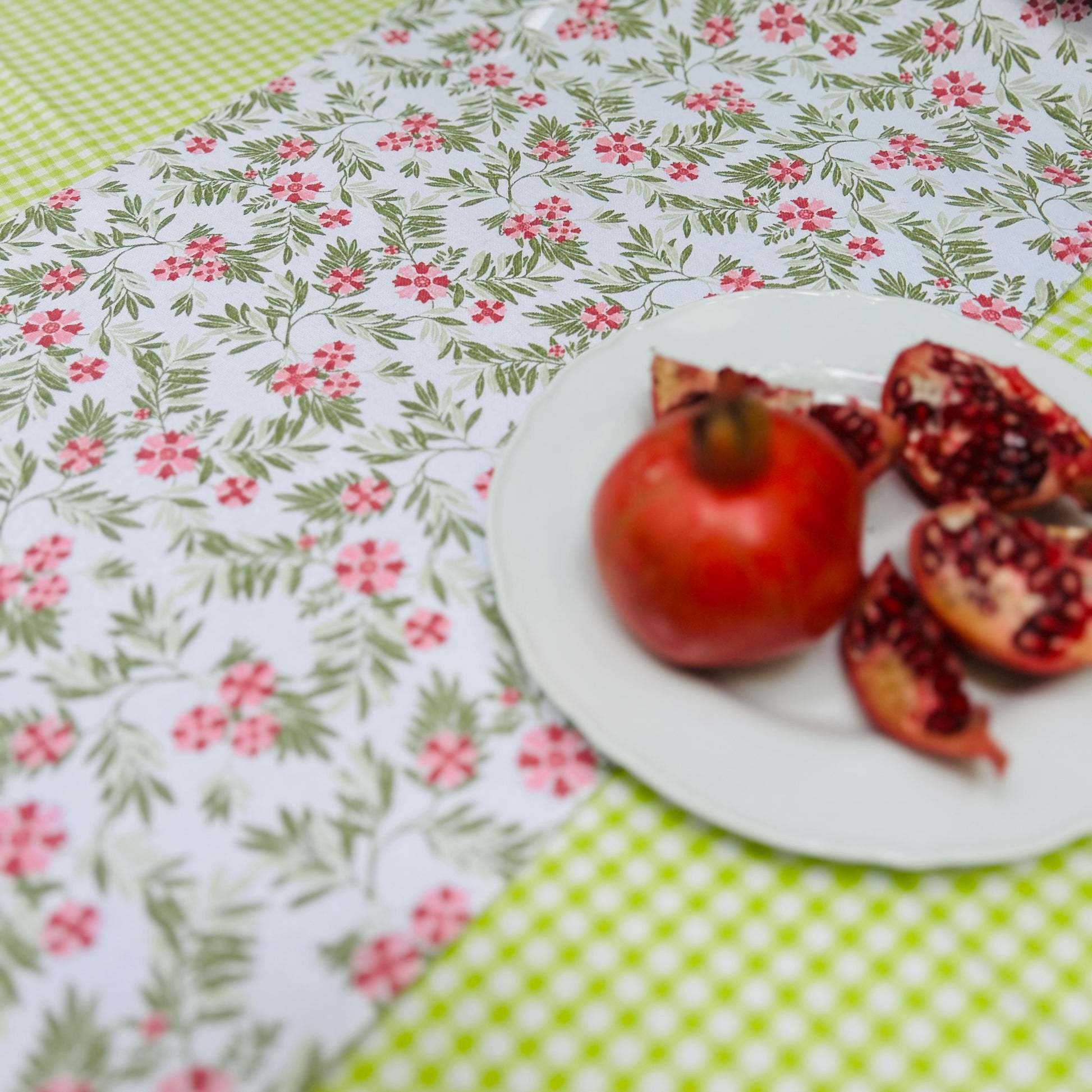 • Charming pink and green floral motifs that add freshness and warmth.