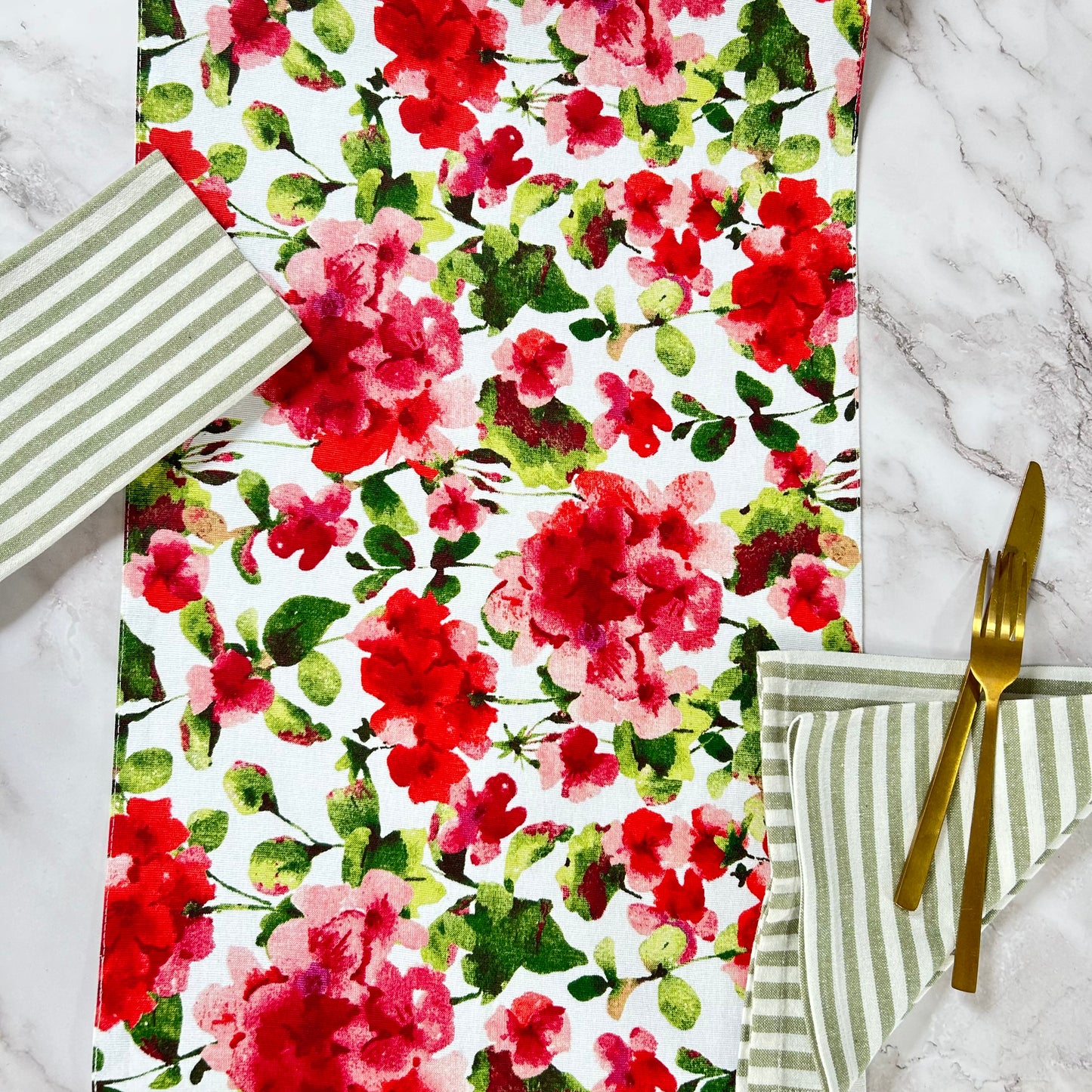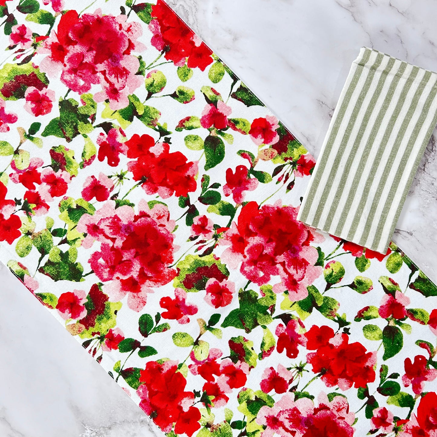 Introducing our Cherry Blossom Garden Table Runner: a serene and elegant addition to your dining decor. Featuring a white base with an all-over digital print of delicate cherry blossoms, this runner brings a touch of nature's beauty to your table. Made from cotton fabric with a fused back, it offers both durability and a premium feel. Pair it with pastel-toned dinnerware for a soft, cohesive look, or contrast it with bold colors to make the floral design pop. Perfect for springtime gatherings or adding a touch of tranquility year-round, this table runner effortlessly enhances any dining setting.