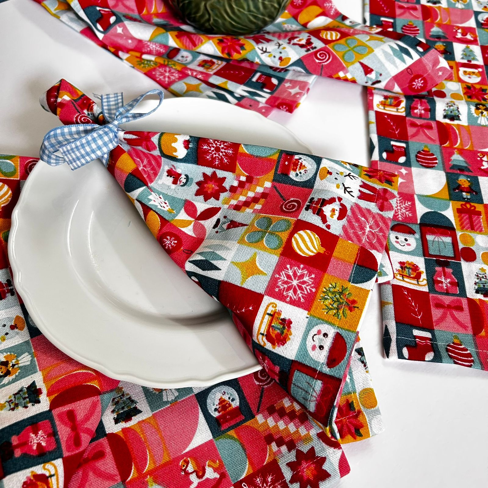 The Christmas Festive Napkins bring festive cheer to your table with their vibrant Christmas vibes print on 100% cotton fabric. This set of four napkins combines elegance and charm, perfect for holiday dinners or seasonal gatherings. The textured fabric adds a rustic touch, while the bright design creates a lively, celebratory vibe. Pair them with neutral tableware to let the print shine, or layer with plaid patterns for a cozy, traditional look. Ideal for creating a warm, welcoming atmosphere for your holiday festivities